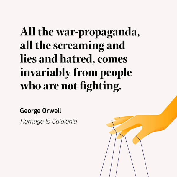 24. “All the war-propaganda, all the screaming and lies and hatred, comes invariably from people who are not fighting.” – George Orwell, Homage to Catalonia