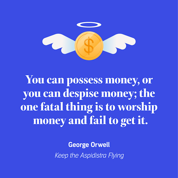 36. “You can possess money, or you can despise money; the one fatal thing is to worship money and fail to get it.” – George Orwell, Keep the Aspidistra Flying